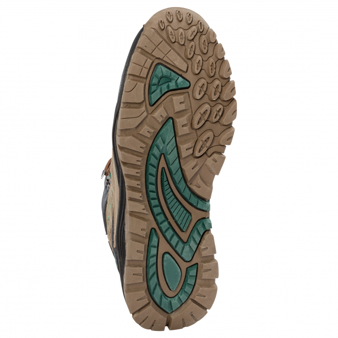 Robuster und angenehm zu tragender, wasserabweisender Trekkingschuh mit AlmTex®. 5 Stoffschlaufen sowie 2 Metallösen ermöglichen einen angenehmen und sicheren Tragekomfort. Futter und Decksohle sind aus Textil und die Laufsohle besteht aus TPR und verleiht auch bei rutschigem Untergrund einen sicheren Stand. Längere Strecken sind so kein Problem. Farbe: braun/grün.