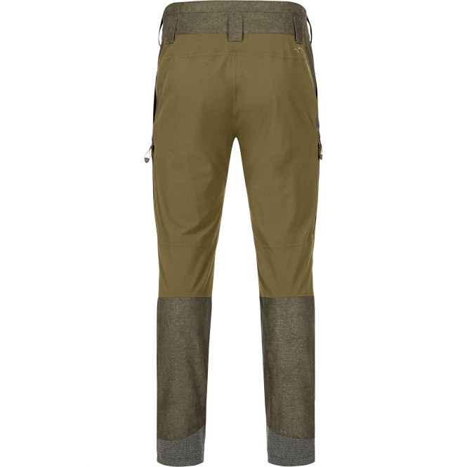 Mit ihrer robusten Materialkombination verbindet die Blaser VINTAGE Whizz Softshellhose Funktionalität mit Komfort und klassischem Design. Farbe: Olive Mélange/Schwarz.