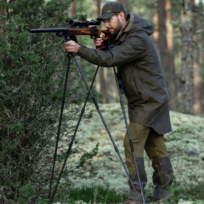 Die Hose ist geräuscharm und eignet sich dadurch ideal für die Pirsch. Sie verfügt über insgesamt fünf Reißverschlusstaschen, darunter zwei Einschubtaschen, zwei Oberschenkeltaschen und eine Gesäßtasche. Gürtelschlaufen und die Eignung für Hosenträger bieten zusätzliche Flexibilität beim Tragen.