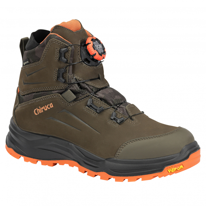 Aus wasserabweisendem Nubukleder und Cordura®-Nylon. Mit BOA® Fit System, Gore-Tex Performance Comfort-Futter, PU-Zwischensohle, Vibram® iron His Vis-Außensohle. Farbe: Oliv.