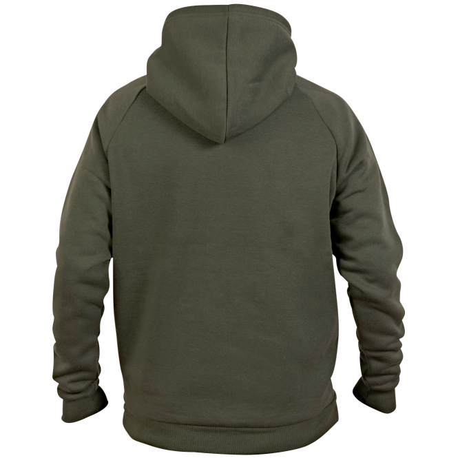 Angenehmer und wärmender Kapuzenpulle mit anpassbarer Kapuze und Handwärmtasche auf der Vorderseite. Farbe: oliv.