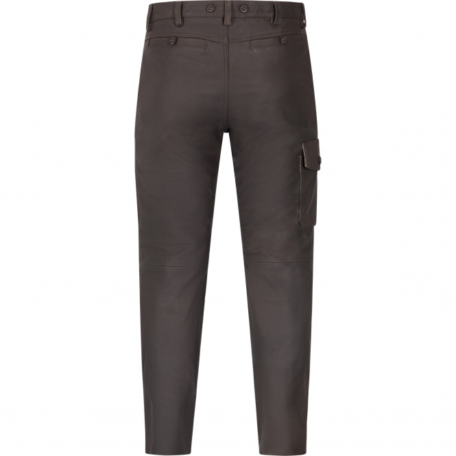 Mit dieser aus hochwertigem Büffel-Nubuk gefertigten Lederhose sind Sie für den Einsatz in der Natur bestens gerüstet. Der gerade Schnitt der Hose mit aufgesetzter Beintasche, zwei Einschubtaschen und zwei Gesäßtaschen mit Knöpfen überzeugt durch besonderen Tragekomfort. Die bequeme Passform macht diese Hose, die wahlweise mit Gürtel oder Hosenträgern getragen werden kann, zu einer Empfehlung für jeden Outdoorfreund. Die Hose hat eine ungekürzte Beinlänge. Farbe: dunkelbraun.