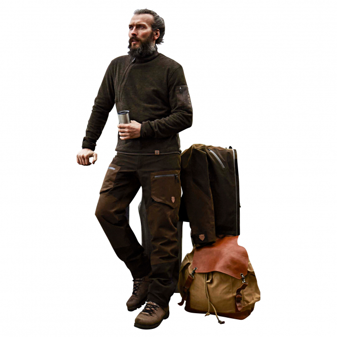 Hergestellt aus ungewöhnlich weichem, flexiblem und geräuscharmem Fleecestoff, der wärmeisolierend und atmungsaktiv ist. Gut geeignet für die Nachsuche, den Umgang mit dem Hund und die Schleichjagd. Perfekt als Wärmeschicht unter Ihrer Jagdjacke. Farbe: braun