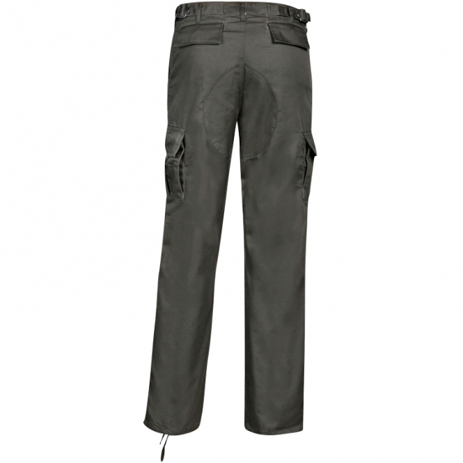 Diese Hose besteht aus einem robusten Mischgewebe mit 240 g/m². Sie verfügt über sechs Taschen, einen verstellbaren Bund, Verstärkungen an Knien und Gesäß sowie schnürbare Beinabschlüsse. Farbe: Oliv.