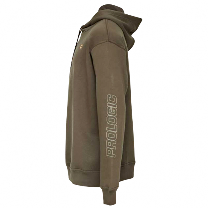 Warmer Kapuzenpullover für den Angelausflug oder auch den Alltag. Spiegelkarpfen als Print auf der Vorderseite sowie dem Prologic-Logo am Arm und auf der Brust. Farbe: efeugrün.