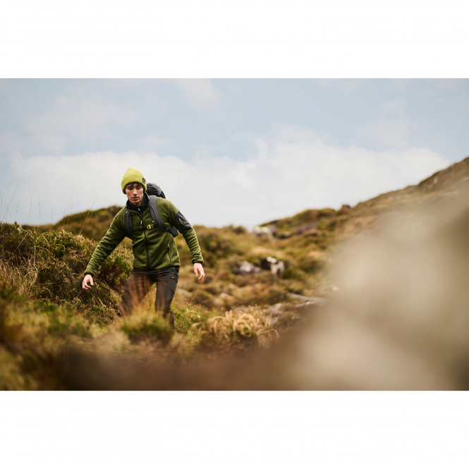 Bequemer und robuster Newhill Herrenpullover mit Reißverschluss – der ideale Layer für unterwegs. Hergestellt aus meliertem Poly-Strickgewebe aus recycelten Plastikflaschen, bietet er Komfort und Strapazierfähigkeit. Farbe: grün.