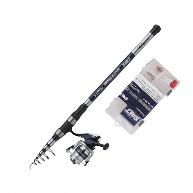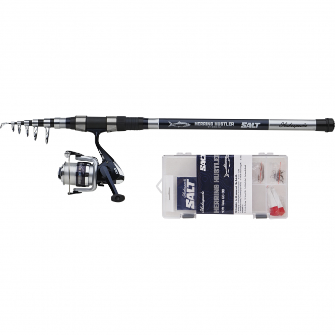 Die Shakespeare SALT Herring Hustler Combo ist eine sofort einsatzbereite Angelausrüstung für Einsteiger, die das Heringsangeln ausprobieren möchten, ohne dabei tief in die Tasche greifen zu müssen. Die robuste Glasfaserrute ist mit langlebigen Edelstahlringen ausgestattet und lässt sich dank ihrer teleskopischen Bauweise platzsparend transportieren. Ergänzt wird das Set durch eine leistungsstarke Graphitrolle, die bereits mit hochwertiger Monofilschnur bespult ist und ausreichend Reserven bietet, um selbst kapitale Heringe sicher zu landen.