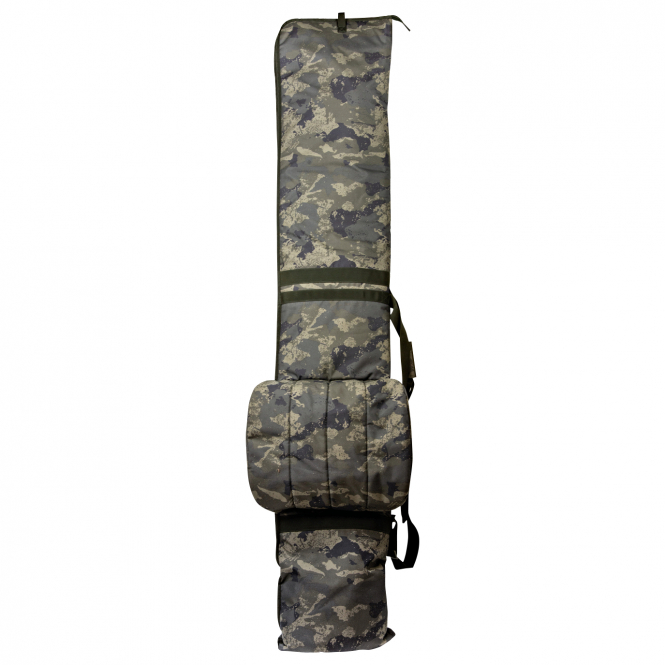 Hochwertiges 12ft-Rutenfutteral für 3 montierte und 3 unmontierte Ruten. Sowohl für Big Pit Rollen als auch Ruten mit 50er-Startringen geeignet. Mit verstellbarem Schultergurt. Klettverschlüsse und gepolsterte Fächer garantieren sicheren Rutentransport. Maße: 185 x 40 x 24 cm. Wasserabweisend beschichtet. Farbe: camo.