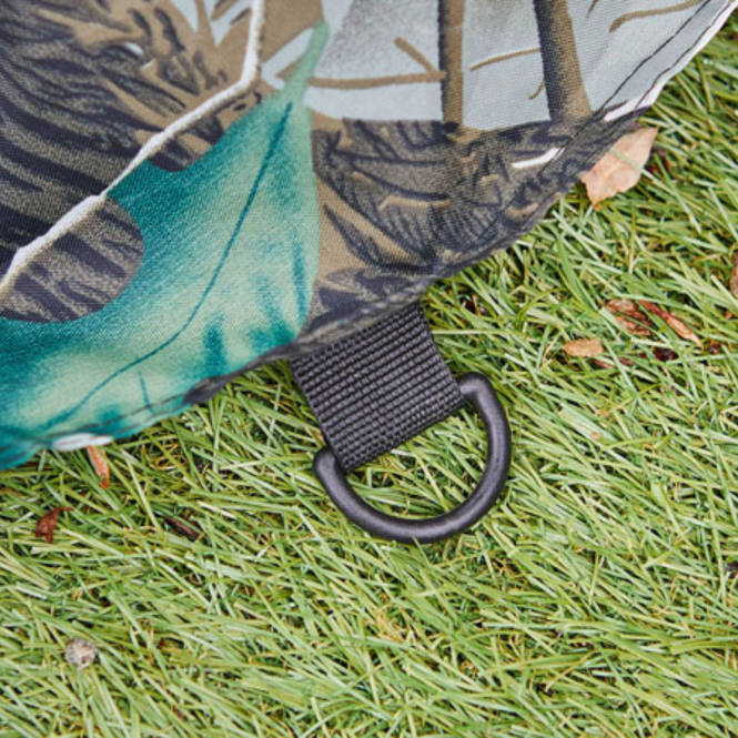 Das sehr geräumiges Schirmzelt in Camouflage-Design bietet Platz für zwei Liegen. Die Front lässt sich per Reißverschluss flexibel abtrennen und sorgt so für optimalen Schutz bei jedem Wetter. Ausgestattet mit Fenstern für mehr Licht und Übersicht. Dank des teleskopierbarem Erdspeers und den versiegelten Nähten, steht das Schirmzelt stabil und ist zuverlässig vor Regen geschützt. Inkl. Heringen, Abspannseilen und einer Transporttasche. Maße: 200 x 200 x 200 cm.