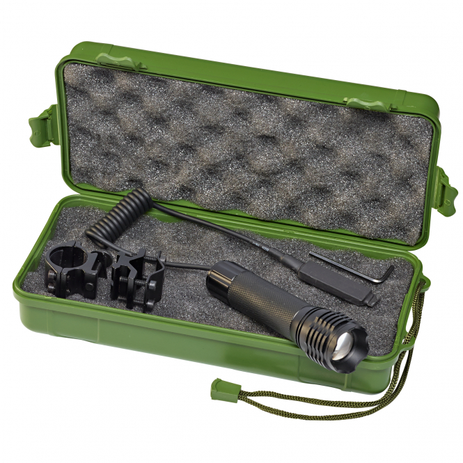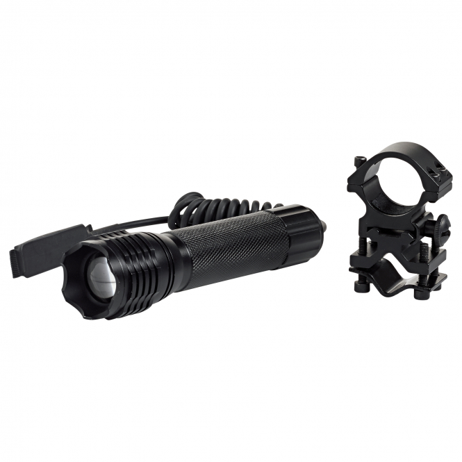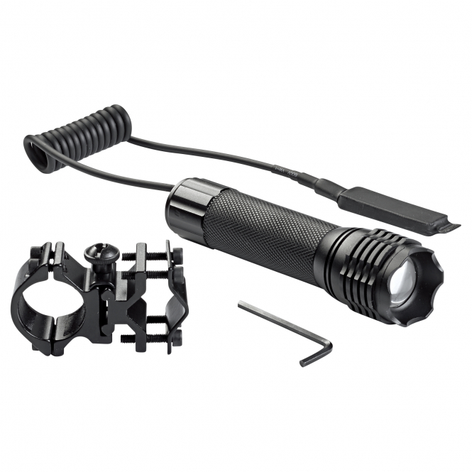 Hochwertige LED-Taschenlampe mit Kabelschalter und Universalhalterung. Sehr hohe Lichtausbeute und geringer Energiebedarf. Mit weißer LEDs erhältlich. Für den Betrieb werden 3 Batterien AAA benötigt (bitte separat bestellen). Lieferung in praktischer Kunststoffbox mit Schaumstoffpolsterung. Farbe: schwarz. Länge: ca. 15 cm, Ø: ca. 3 cm, Gewicht: 115 g. Leuchtkraft: 100 Lumen