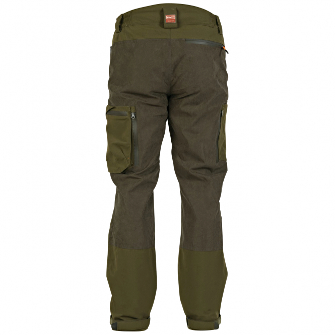 Die Hose Taunus XHP-T überzeugt durch ihre geräuscharme und strapazierfähige Verarbeitung aus Mikro-Toplon, ergänzt durch robuste 500D Nylon-Verstärkungen an besonders beanspruchten Bereichen. Die integrierte Osmotech Plus-Membran sorgt für zuverlässigen Wetterschutz mit hoher Wasserdichtigkeit (10.000 mm) und ausgezeichneter Atmungsaktivität (10.000 g/m²), sodass Sie bei jeder Witterung komfortabel unterwegs sind. Für ein angenehmes Körperklima unterstützt das Hartware-Konzept die natürliche Wärmeregulierung und verhindert sowohl Überhitzung als auch Auskühlung. Die dreifach vernähten Hauptnähte erhöhen die Strapazierfähigkeit und machen die Hose besonders widerstandsfähig gegen Beanspruchung bei intensiven Aktivitäten. Praktische Details wie vier Taschen mit wasserdichten YKK-Reißverschlüssen – darunter zwei Fronttaschen, eine seitliche Cargotasche mit Unterteilung für schnellen Zugriff und eine Gesäßtasche – bieten viel Stauraum für Ihre Ausrüstung. Zwei wasserdichte Ventilationsreißverschlüsse ermöglichen zusätzliche Belüftung, während eine separate Messertasche schnellen Zugriff auf Ihr Werkzeug bietet. Das innovative Hook & Loop System (HLS) am Beinabschluss erlaubt eine individuelle Anpassung und kann bei Bedarf einfach entfernt werden. Farbe: Dunkeloliv.