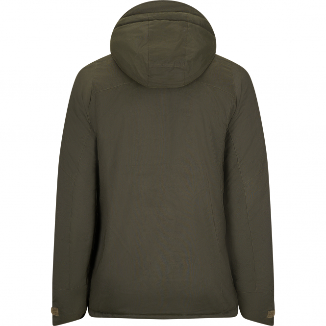 Dieser Jagdklassiker ist speziell für die Bedürfnisse aktiver Jäger entwickelt worden. Die Jacke besticht durch ihre verlängerte Rückenpartie, die zusätzlichen Schutz und Wärme bietet, sowie durch die abnehmbare Kapuze, die je nach Wetterlage flexibel eingesetzt werden kann. Mit zwei geräumigen Seitentaschen, die mit Druckknöpfen verschlossen werden, und einer Innentasche mit Reißverschluss bietet die Jacke reichlich Stauraum für alle wichtigen Utensilien. Die Farbe Oliv sorgt für eine optimale Tarnung in der Natur.