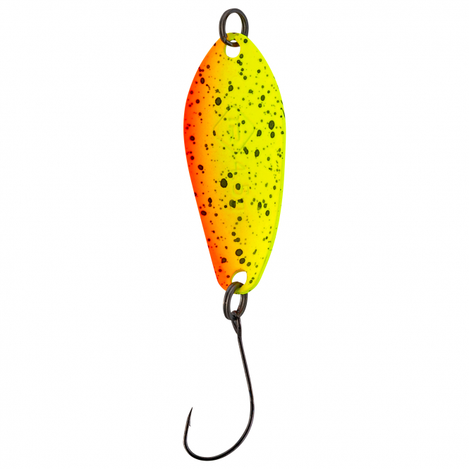 Der Iron Trout Heavy Wave Spoon ist ein speziell entwickelter Forellenblinker mit voluminöser Körperform, der beim Einholen eine ausgeprägte Druckwelle erzeugt. Dadurch bleibt er auch in größerer Tiefe oder bei Strömung sehr gut wahrnehmbar und spricht Forellen über das Seitenlinienorgan frühzeitig an. Besonders in Situationen, in denen schmalere Blinker an Wirkung verlieren, sorgt der Heavy Wave Spoon für zusätzliche Aufmerksamkeit.