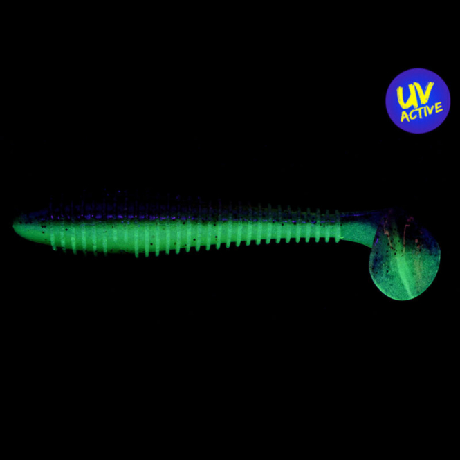 Der Keitech Fat Swing Impact ist ein hochwertiger Gummifisch für Barsch und Zander, der sich äußerst flexibel einsetzen lässt – als kompakter Swimbait, klassisch am Jigkopf oder an unterschiedlichen Finesse-Rigs. Sein bauchiger, gerippter Körper in Verbindung mit dem kräftig arbeitenden Schaufelschwanz erzeugt intensive Druckwellen und eine auffällige Wasserverdrängung.