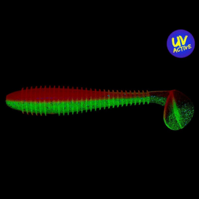 Der Keitech Fat Swing Impact ist ein hochwertiger Gummifisch für Barsch und Zander, der sich äußerst flexibel einsetzen lässt – als kompakter Swimbait, klassisch am Jigkopf oder an unterschiedlichen Finesse-Rigs. Sein bauchiger, gerippter Körper in Verbindung mit dem kräftig arbeitenden Schaufelschwanz erzeugt intensive Druckwellen und eine auffällige Wasserverdrängung.
