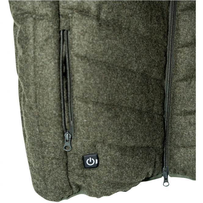 Diese leicht abgesteppte Heizweste aus feinem Merinoschurloden vereint traditionelles Handwerk mit modernster Technologie. Merinoloden ist von Natur aus temperaturausgleichend, antibakteriell und nahezu selbst reinigend. Er schützt zuverlässig vor Wind und Wetter, ist schmutz- sowie wasserabweisend und äußerst scheuerfest. Für kalte Tage verfügt die Weste über eine integrierte Heizfunktion, die sich ganz einfach per Knopfdruck aktivieren lässt. Drei wählbare Temperaturstufen sorgen für wohltuende Wärme, die über eine LED-Anzeige sichtbar gemacht wird. Wer auf Diskretion Wert legt, kann die Anzeige im sogenannten Ghost-Modus deaktivieren – ideal für dunkle Umgebungen, in denen kein Licht stören soll. Die abgesteppten Zonen an Vorder- und Rückseite sorgen nicht nur für ein modernes Erscheinungsbild, sondern bieten zusätzlich ein hervorragendes Isolationsvermögen. Ein elastischer Gummizug unterstützt die sehr gute Passform. Farbe: Olive.