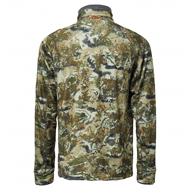 Warmer Gitterfleece-Stoff mit gegliederter, körperbezogener Schicht für ideale Wärme und besten Komfort. Mit Troyer-Kragen, Brusttasche und Daumenlöchern. Farbe: Biarri Camo.